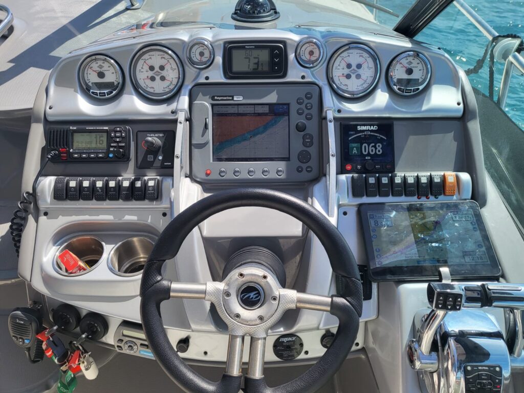 -GPS  – AIS   -Piloto automático     – Sonda  – VHF      – Bomba de Achique   -Escalera de baño                 – Equipo de seguridad   – Cañeros                          – Molinete eléctrico   –  TV       – Nevera Eléctrica           – WC marino           -Generador    – Aire acondicionado     – Horno  – microondas    -Helice de proa    -Deposito de aguas negras   –     Lona camper.